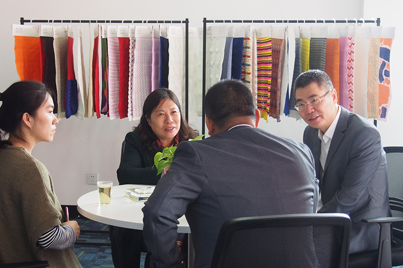 副總經理方國聽、銷售部分管副總鄭百榮與客戶交談。