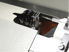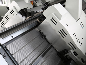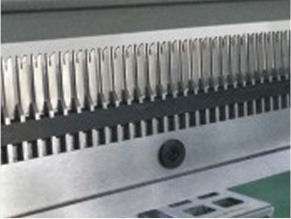 剪刀夾子 夾子與剪刀相互配合.提高編織效率。 | 起底針板 采用活動釋放原理.與剪刀夾子配合.有效減少紗線浪費 減少人工拆片。 | 滾筒輸紗器 積極送紗.有效減少紗線阻力.提高編織效率。 |