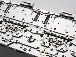 顯示屏 采用全觸摸屏.方便客戶操作.提高客戶應用體驗。 | 針扳 分體設計.與針磨合部分的插片采用進口鋼材經(jīng)精沖與 研磨制造而成.破少與針腳的磨損降低針腳阻力.有效提 高了機器編織效率。 | 三角 編織核心部件.應用進口鋼材,采用高速加工中心制造 而成.并且經(jīng)過研磨使得表面光潔度接近鏡面光潔,有 效減少與針腳磨損,提高機器編織效率。 |